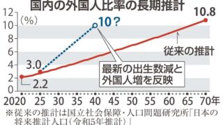 ニュー速+ 「出生数は最少70万人、外国人は年30万人増」 14年後にも”10%”の可能性 人口動態統計