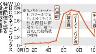 芸スポ 【WBC】ネトフリ独占配信に賛否、有料化を批判 Xの投稿分析で「否定的」「肯定的」ほぼ拮抗
