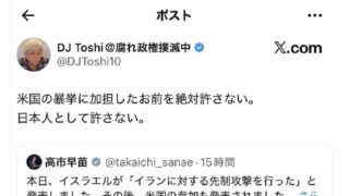 ニュー速 パさん「米国の暴挙に加担した高市早苗を絶対許さない。日本人として許さない」