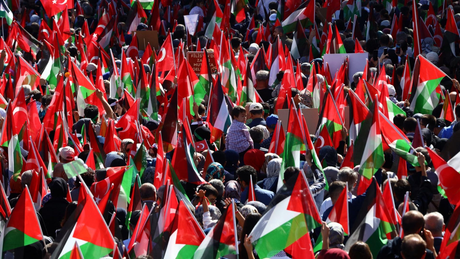 トルコの首都アンカラで開催された、イスラエル軍によるガザ支援船拿捕に抗議するデモ(2025.10.5)。(写真:ロイター/アフロ)