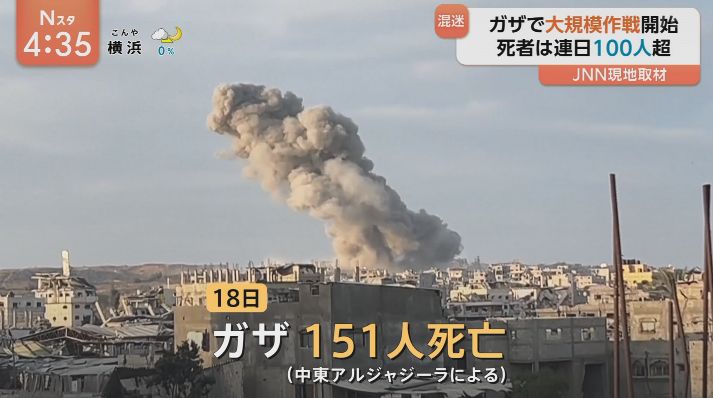 「ガザの上空には黒い煙がたちこめています。攻撃が続いていることがわかります。そして、こちらイスラエル南部の高い丘になっている場所では、攻撃の様子を見る市民の姿があります」