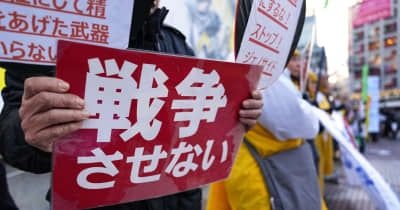 参加者は台湾有事を巡る高市首相の発言も批判。イスラエルによるパレスチナ自治区ガザへの攻撃で多くの市民の命が奪われているとして、戦争反対や平和外交も訴えた。「戦争をあおるな」「武力で平和はつくれない」などと書かれた横断幕を手にする人もいた。