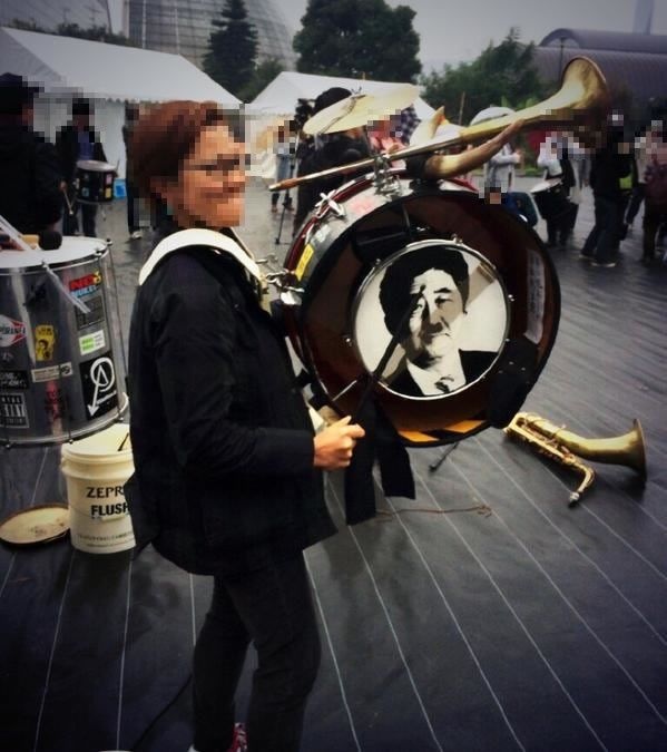 >>1>>「RESIST ABE」(安倍に抵抗せよ)の横断幕が掲げられ、