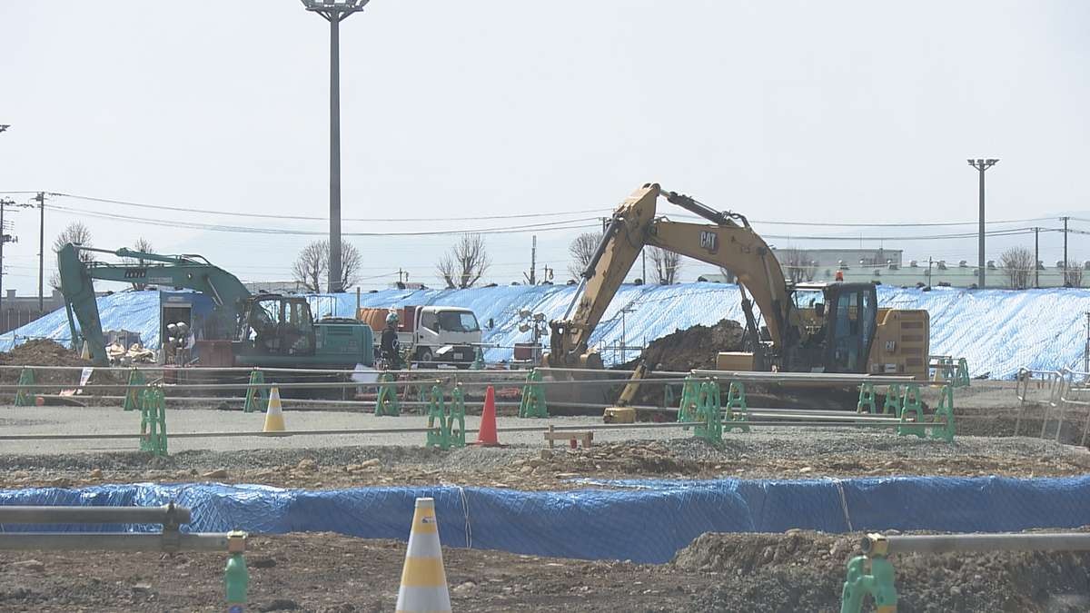 天童市内で建設が進むサッカーJ2・モンテディオ山形の新スタジアムは、建物土台部分の整備が始まり、建設工事が本格化しています。一時、資金調達の問題が浮上した影響で工事は当初の予定から3カ月遅れで進んでいて、2年後の2028年8月ごろの完成が見込まれています。