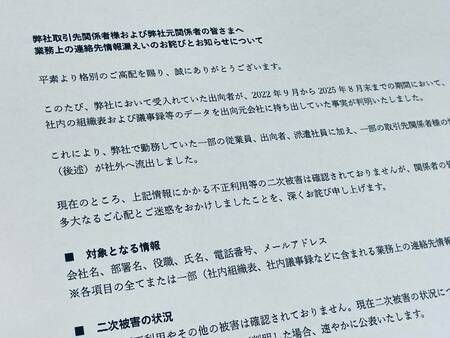 そもそもトヨタは2025年10月、「弊社取引先関係者様および弊社元関係者の皆さまへ」と題した文書で、「弊社において受入れていた出向者が、2022年9月から2025年8月末までの期間において、社内の組織表および議事録等のデータを出向元会社に持ち出していた事実が判明しました」と公表している。