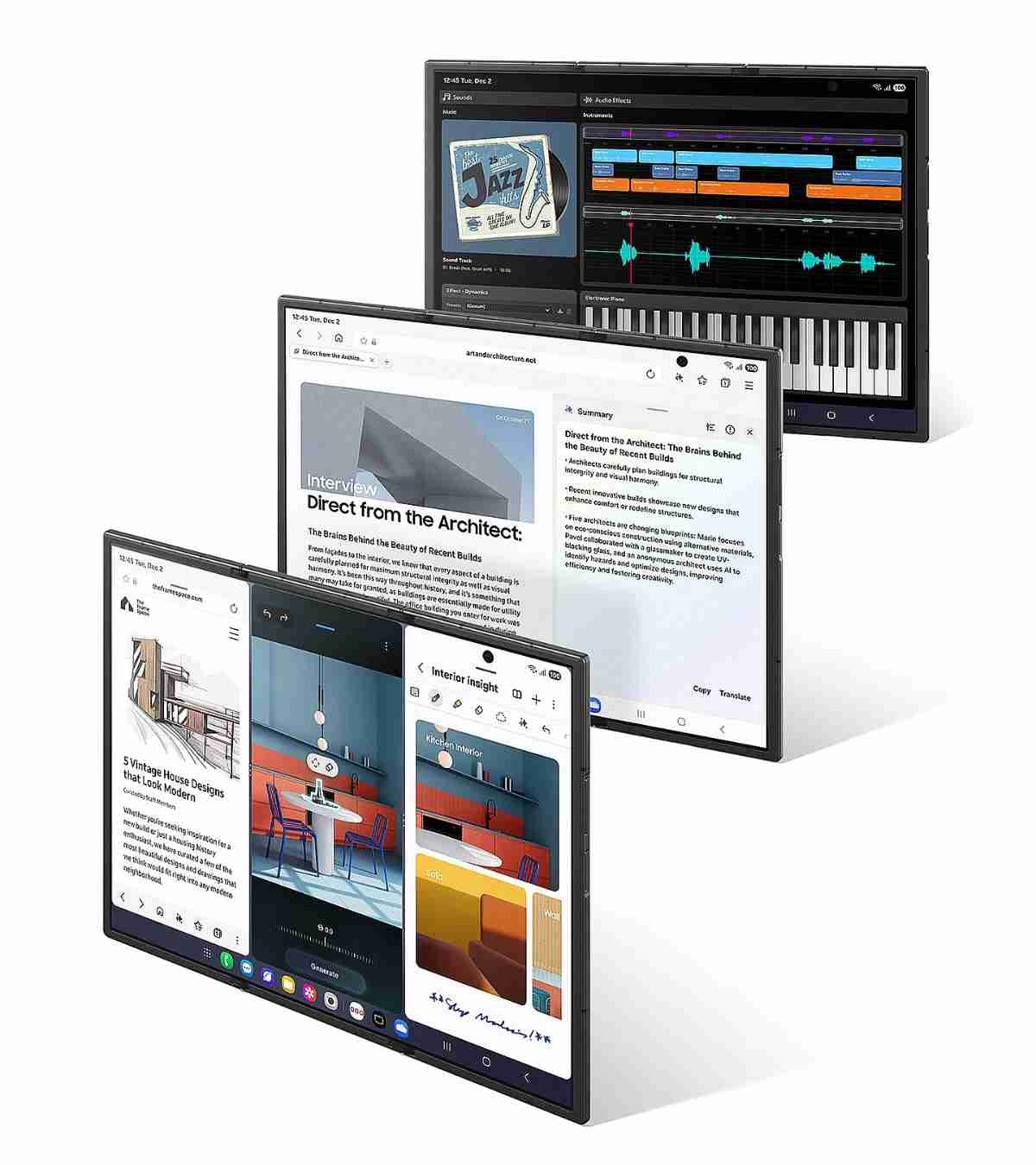 これにより、3つのアプリを同時に表示して作業するなど、パソコンのようなマルチタスク環境を実現する。