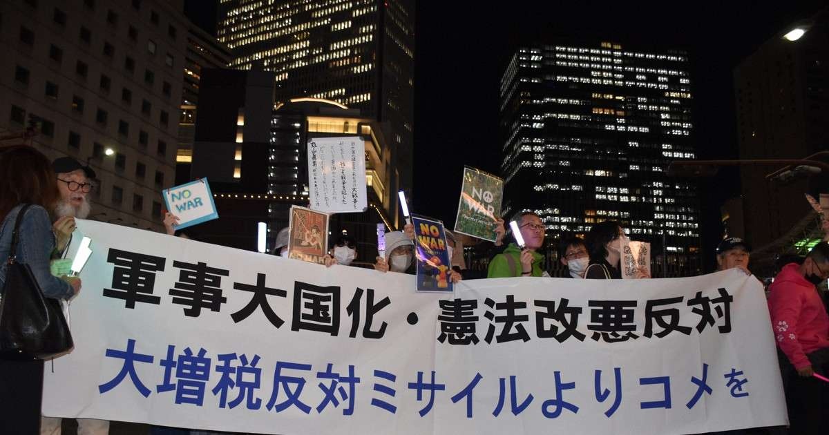 反戦や憲法を守ろうと訴えるデモが8日、関西を含めて全国的に実施された。大阪でもJR大阪駅周辺に約2000人が集まって「戦争反対」「9条守れ」などと訴えた。ミナミにも数百人が集まった。