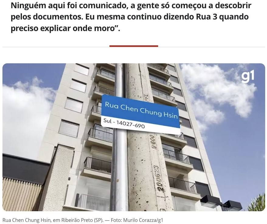 「ピザすら頼めない」――サンパウロ州内陸部リベイロン・プレト市の新興住宅地で、単なる番号名だった「Rua 3(3番通り)」が突如、台湾系の人名を冠した「Rua Chen Chung Hsin」に改名された。ブラジルでは住所が通り名で表記されるため、その発音の難しさからオンライン注文、住所確認、緊急通報に至るまで、あらゆる場面で支障が生じ、地域住民の日常に思わぬ混乱をもたらしている実情を9月28日付G1が報じた。