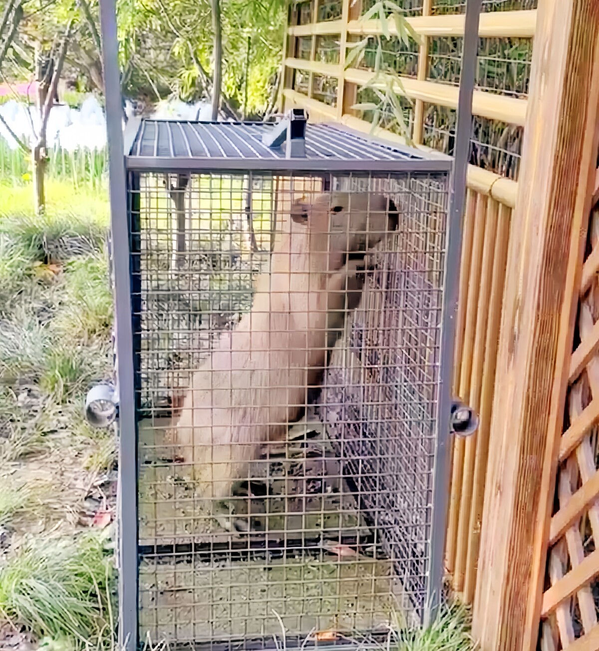 同市の茱萸湾動物園で飼育されていた「豆包」は2カ月ほど前に脱走して行方が分からなくなっていたが、同日午前2時ごろ、カピバラ展示エリアの近くに設置していた捕獲用のおりに自ら入り、仕掛けが作動して捕獲された。