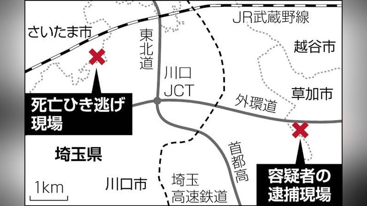 >バイクに乗っていた同県川口市の会社員吉田光暢さん(当時46歳)を後ろから車ではねて殺害した疑い