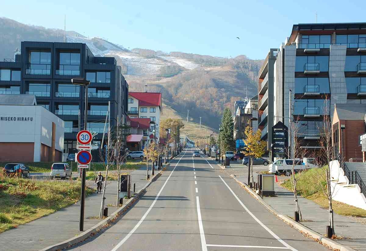 外国人宿泊者向けの別荘などが立ち並ぶニセコエリアの一角=2017年10月、北海道倶知安町