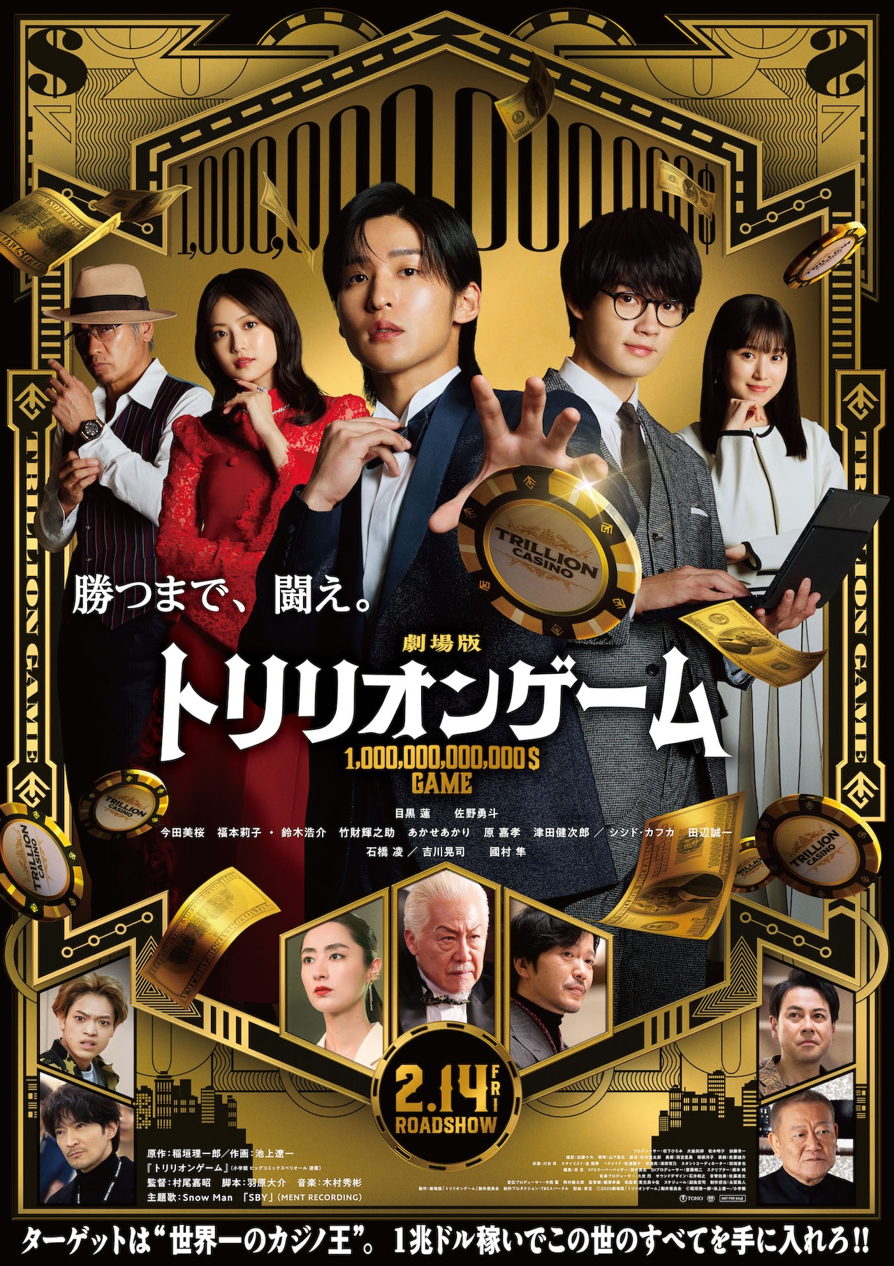 本作は2023年7月期にTBS系で放送された連続ドラマ「トリリオンゲーム」の劇場版で、原作者・稲垣理一郎が監修した完全オリジナルストーリーが展開。信念のためワガママを突き通すハッタリ男・ハルと、気弱で心優しい凄腕エンジニア・ガクが日本初のカジノリゾート開発に挑む。目黒蓮(Snow Man)がハル、佐野勇斗(M!LK)がガクに扮し、村尾嘉昭が監督を務めた。
