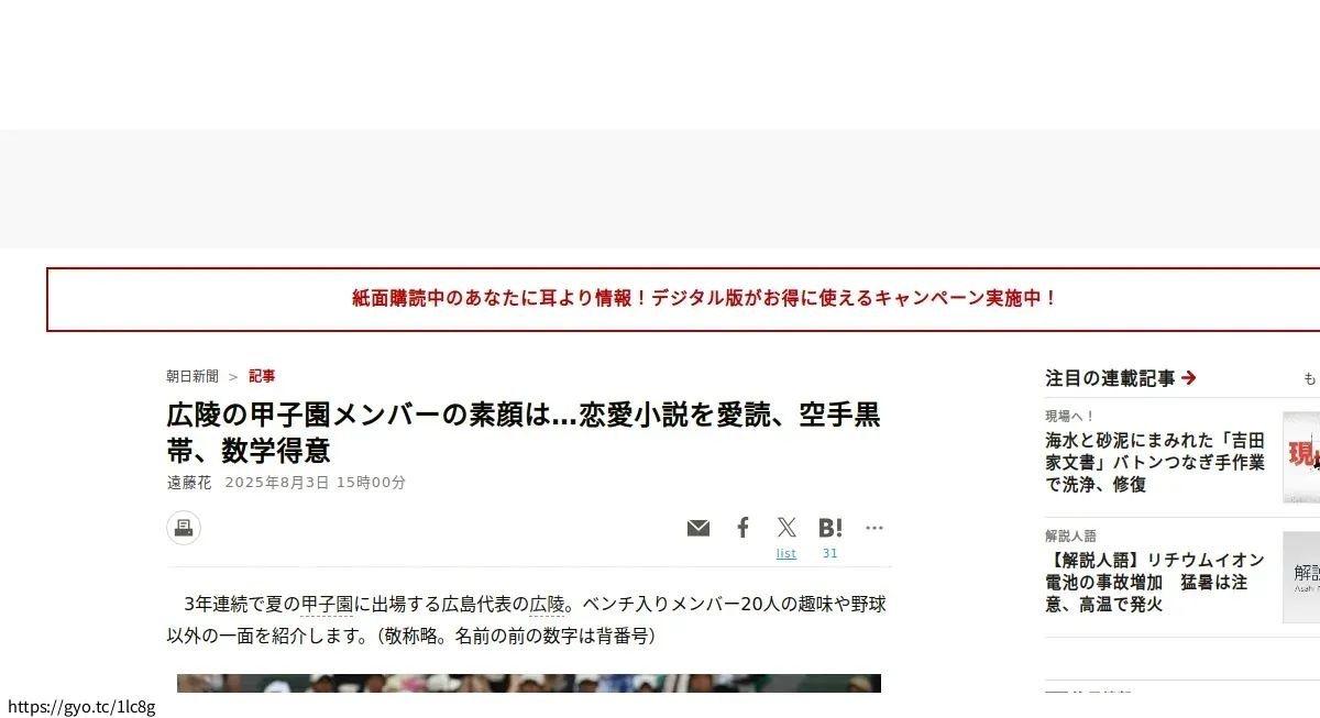 https://megalodon.jp/2025-0807-2053-26/https://www.asahi.com:443/sp/articles/AST8315V3T83PITB00GM.html広陵の甲子園メンバーの素顔は…恋愛小説を愛読、空手黒帯、数学得意