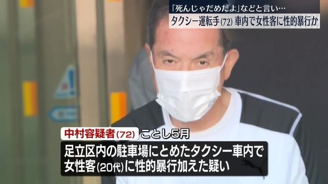 「死んじゃだめだよ」などと言い、女性客に性的暴行か 72歳タクシー運転手逮捕(日テレNEWS NNN) - Yahoo!ニュース72歳のタクシー運転手の男が身の上話をした女性客に、「君みたいなかわいい子が死んじゃだめだよ」などと言って、性的暴行を加えたとして、逮捕されました。 警視庁によりますと、タクシー運転手の中村政和容news.yahoo.co.jp