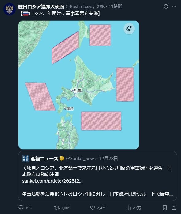【独自】ロシア、年明けに北海道を囲んで二ヶ月に渡る演習を行う模様