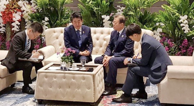 韓国の大統領室は、また伝統芸の「出待ち」でもするつもりなのでしょうか。「会談はねーよって言ってるだろ」というのに、文在寅は安倍晋三首相を近場のソファに座らせ、写真を撮って「はい歓談」と