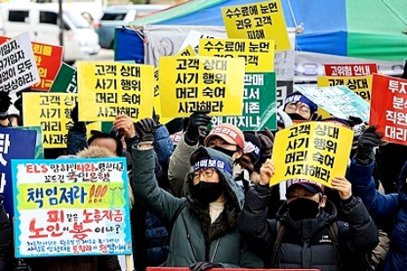 ↑ソウル市金融監督院前でデモを行う「被害者」と称する皆さん。ELSは投資商品なので「被害者」も何もありません。