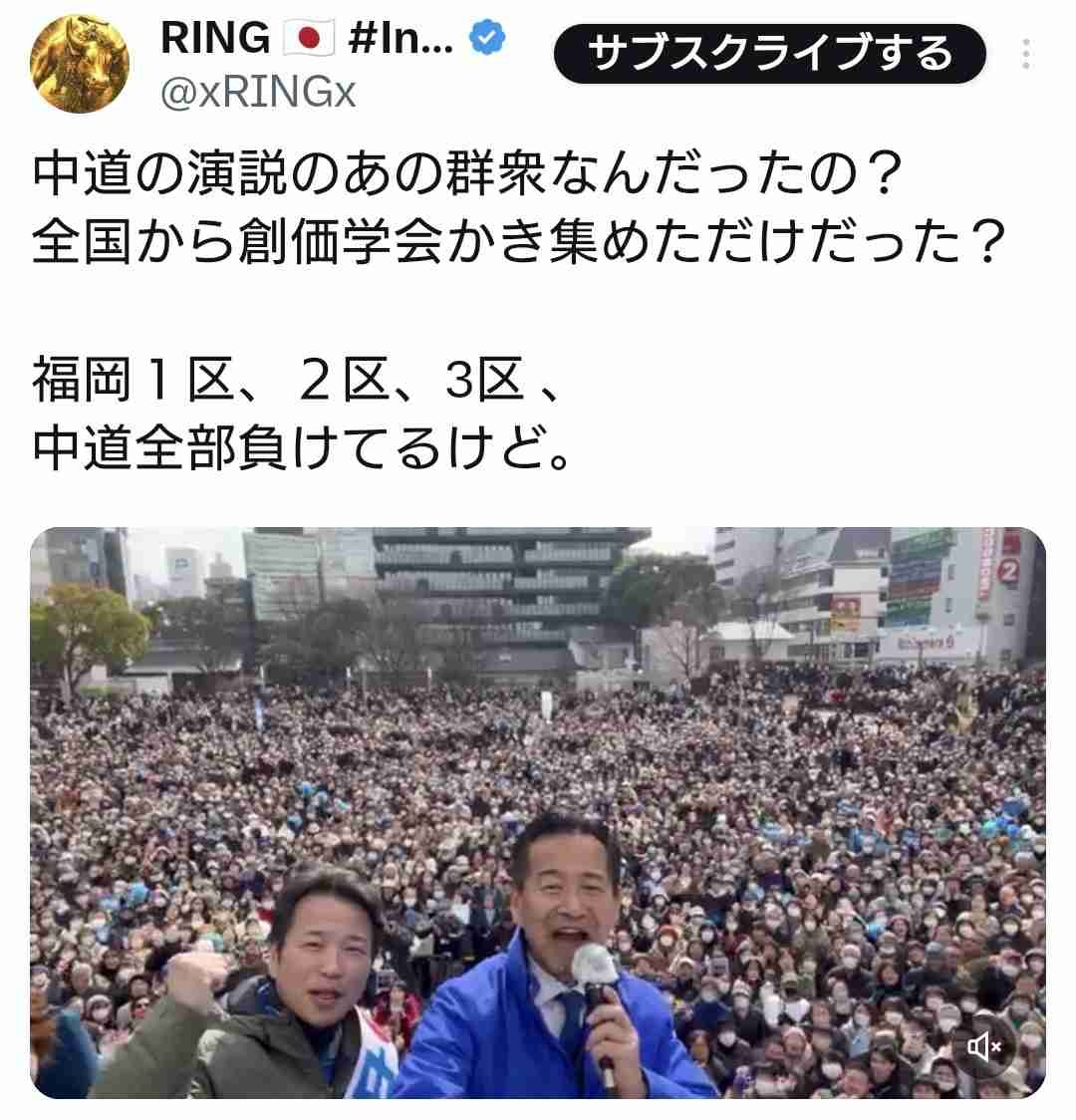 でなければ九州中と山口辺りの学会員を根こそぎ動員w