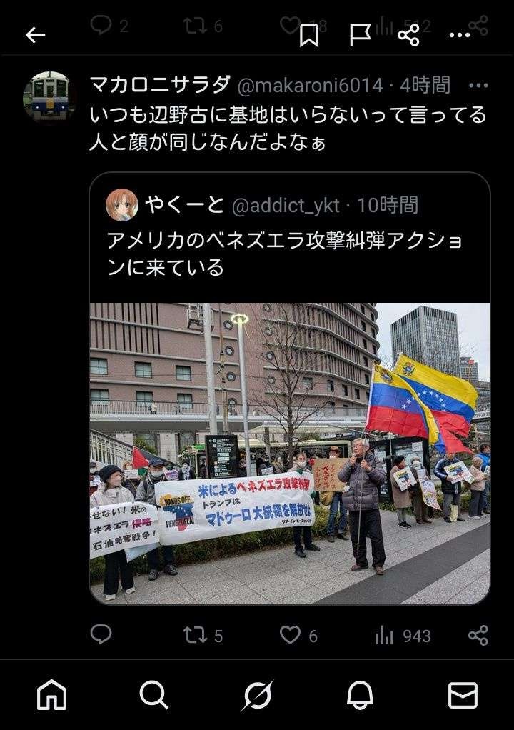 1月4日、大阪市内で反戦団体が呼びかけたデモで約150人が集まり、米国によるベネズエラ攻撃を非難した。背景はトランプ大統領命令の軍事作戦で、マドゥロ大統領夫妻が拘束され40人以上が死亡。Xでは参加者の姿や主張に対し「ベネズエラ国民は米軍歓迎」「麻薬カルテルの味方」との批判が殺到し、デモの外見をめぐる議論が過熱した。日本政府は民主主義回復を望むが、米批判を避けている。