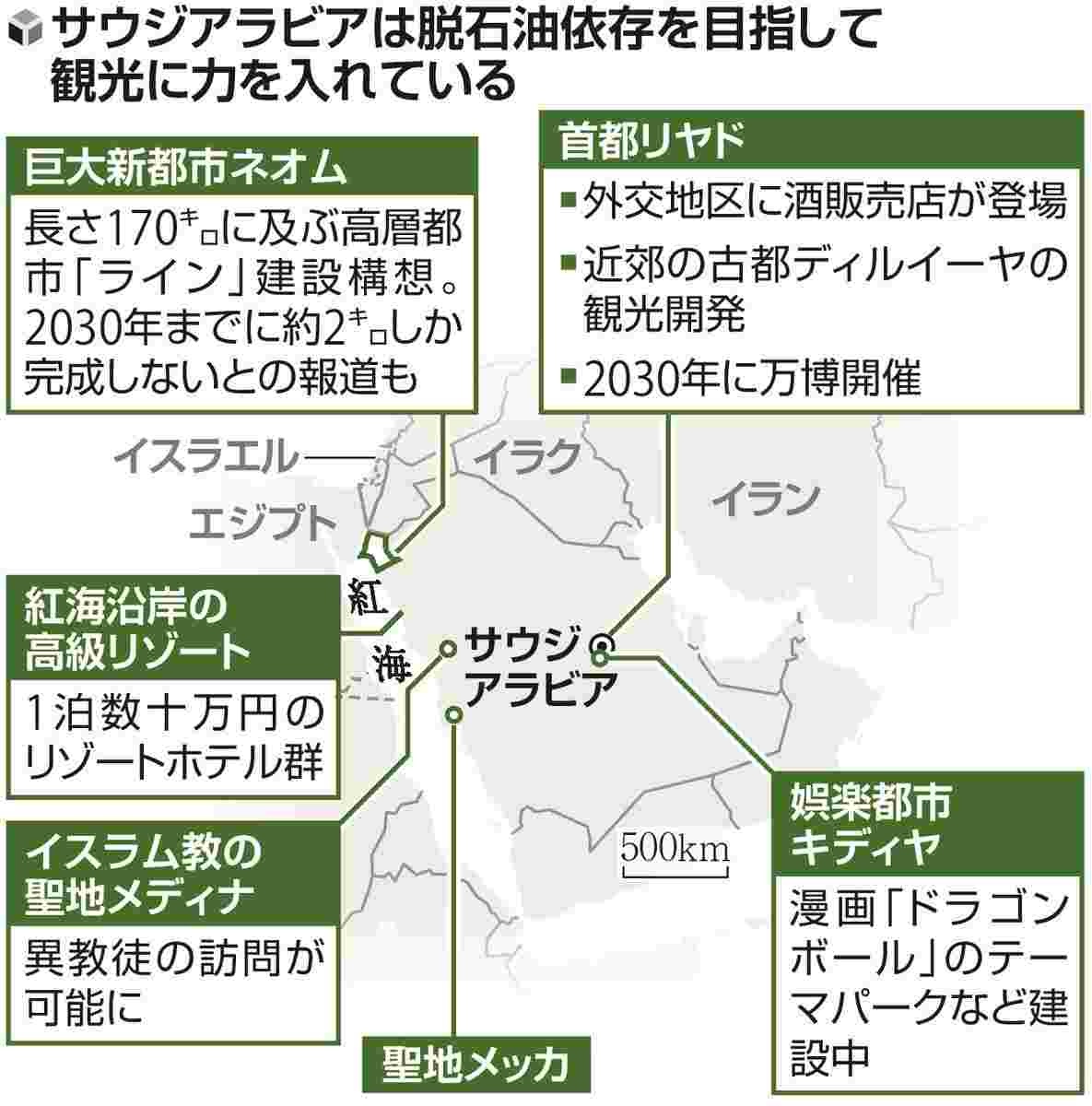服装や酒類販売などの規制緩和は保守層の反発を招く恐れがあり、政府はメッカ、メディナのイスラム教2大聖地の守護者として今後も慎重な判断を求められる。紅海沿岸の巨大新都市計画は、すでに建設コストの高騰などによる進捗の遅れが目立つ。