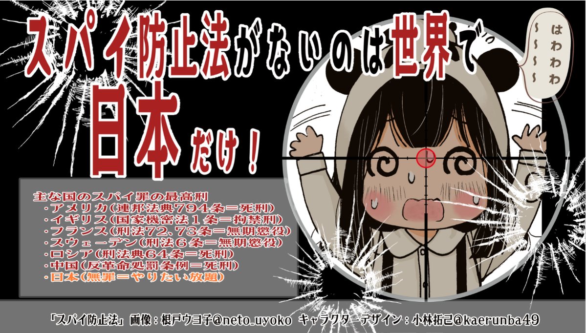 日本人は、スパイ防止法を妨害して得しないし、妨害しても自分自身の首を絞めるだけ