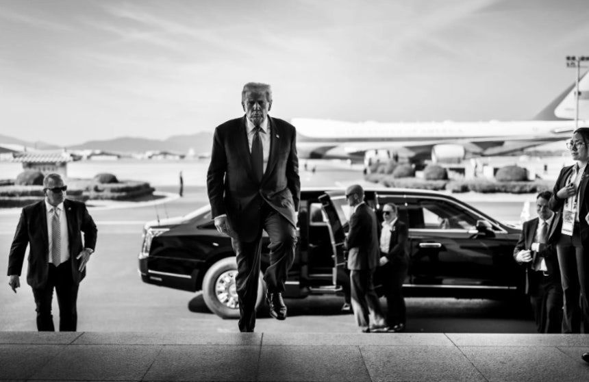 この写真は2024年10月30日にトランプ大統領がアジア太平洋経済協力会議(APEC)首脳会議を契機に訪韓し、習近平主席と会談するために金海(キムヘ)空港空軍基地に到着した当時に撮影されたものだ。原本の写真は、ホワイトハウスのホームページと公式写真共有チャンネルに「トランプ大統領が習近平主席との2国間会談に出席した」という説明と共に公開されたもので、今回のSNS掲示物はこれを利用して編集したとみられる。