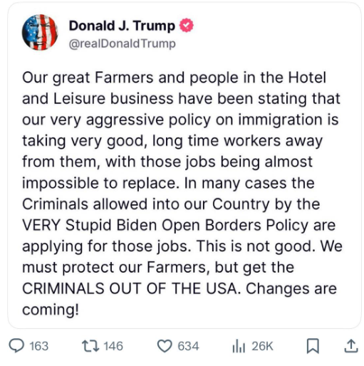 トランプ大統領「助けて!不法移民を片っ端から捕まえていったら農業やる人が居なくなったの!」