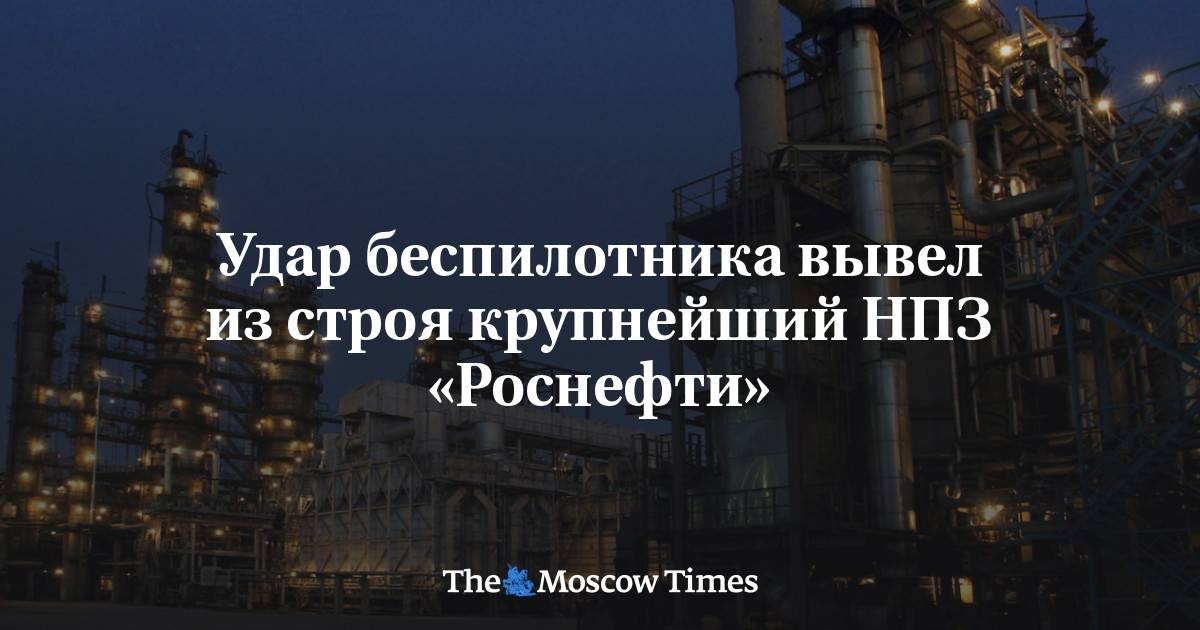 https://www.moscowtimes.ru/2025/09/05/udar-bespilotnika-vivel-izstroya-glavnuyu-ustanovku-krupneishego-npz-rosnefti-a173737