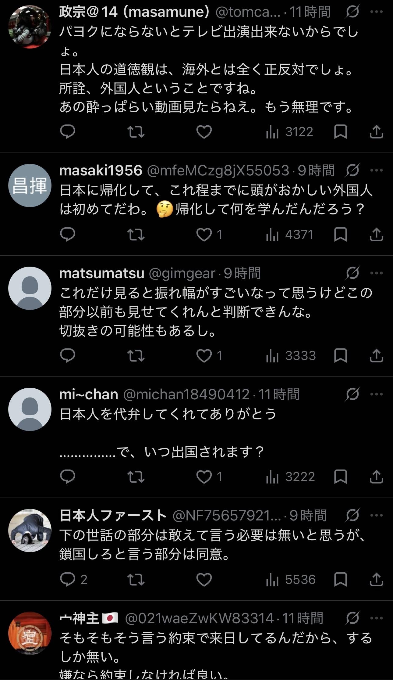 こいつ日本でピーチクパーチク言わずに祖国で政治や経済何とかしろって毎回思う