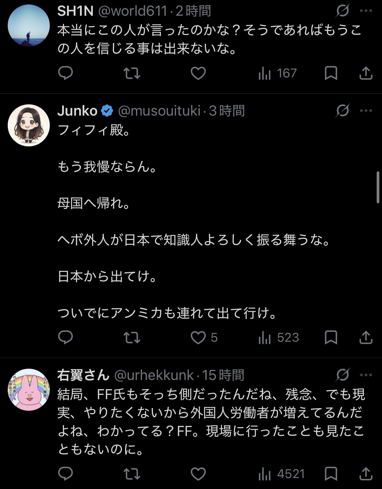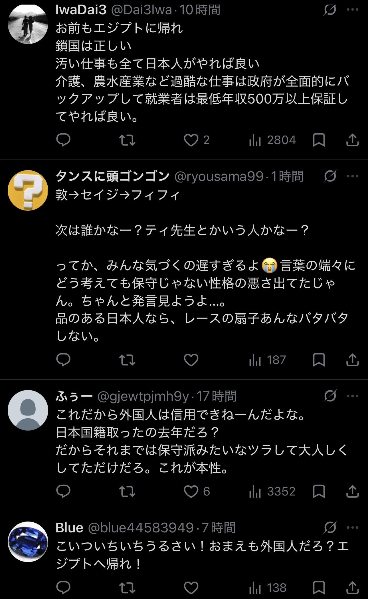 フィフィ自身が純粋な日本人と言うのには無理があるし(笑)