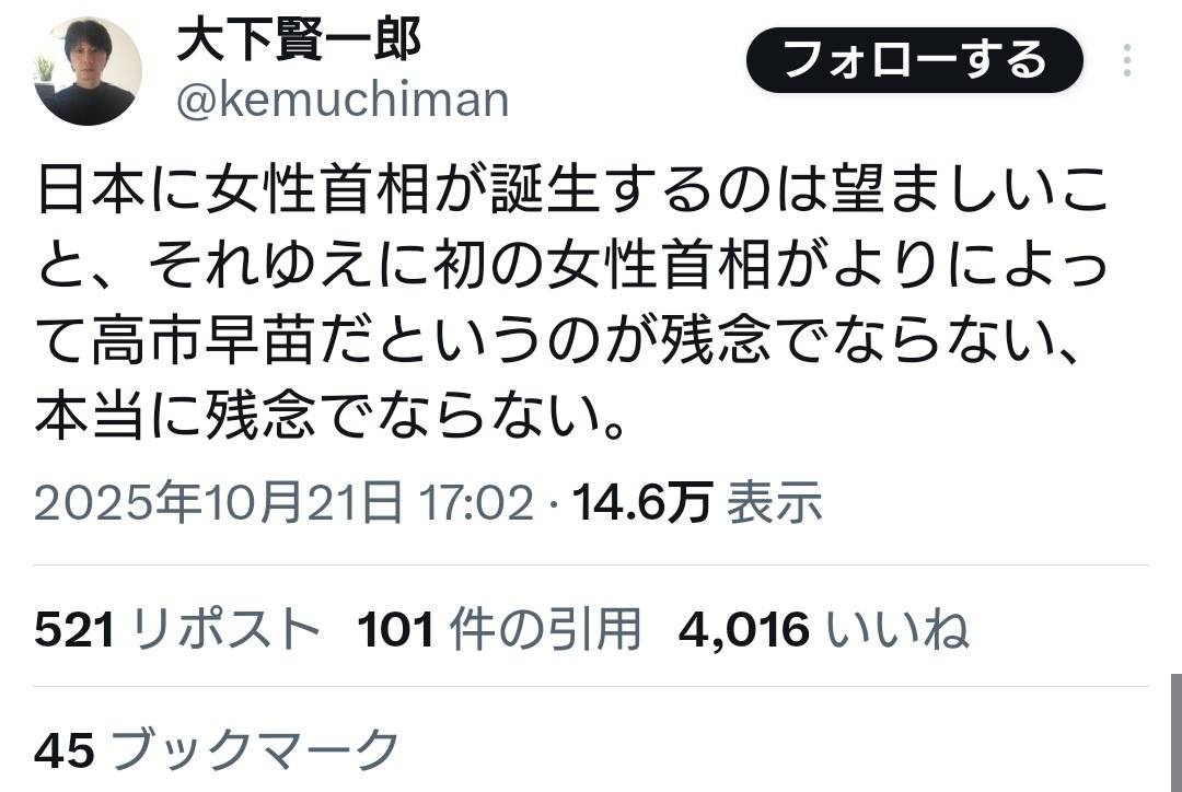 「女性の総理大臣以外が誕生するのは差別だ!」