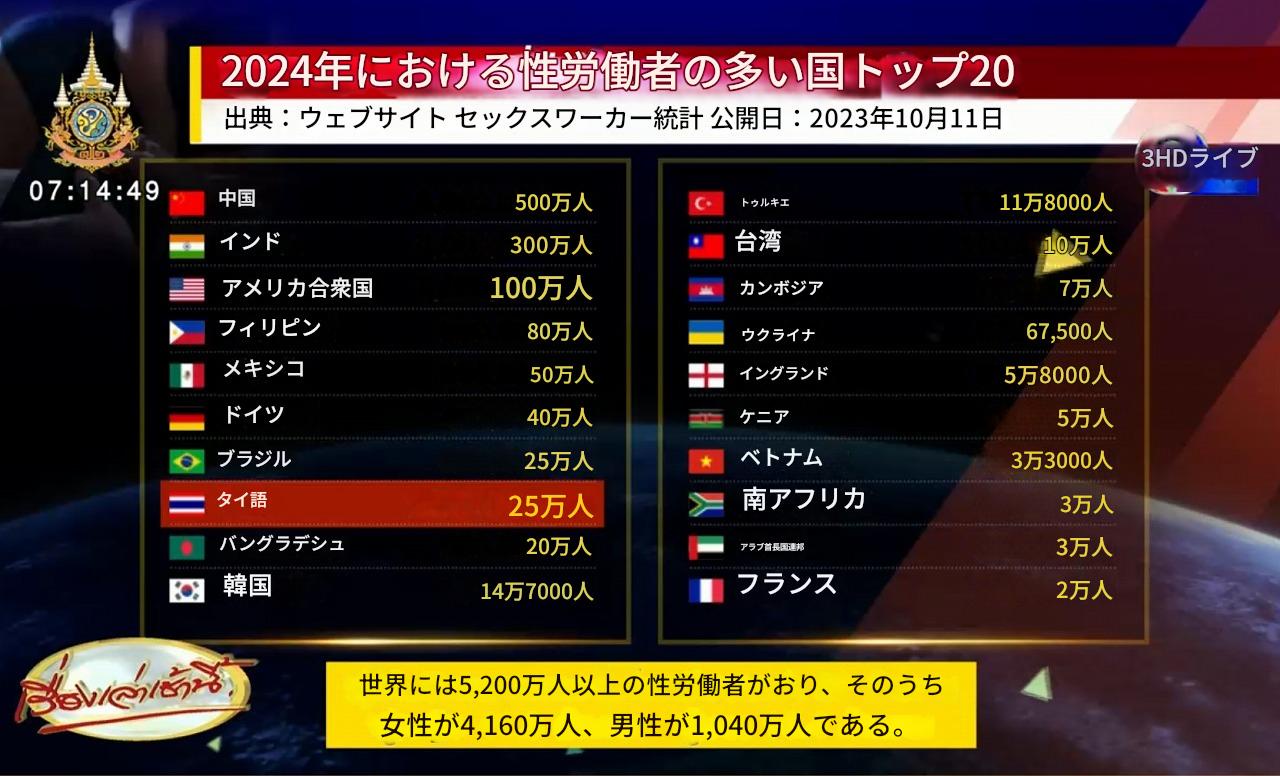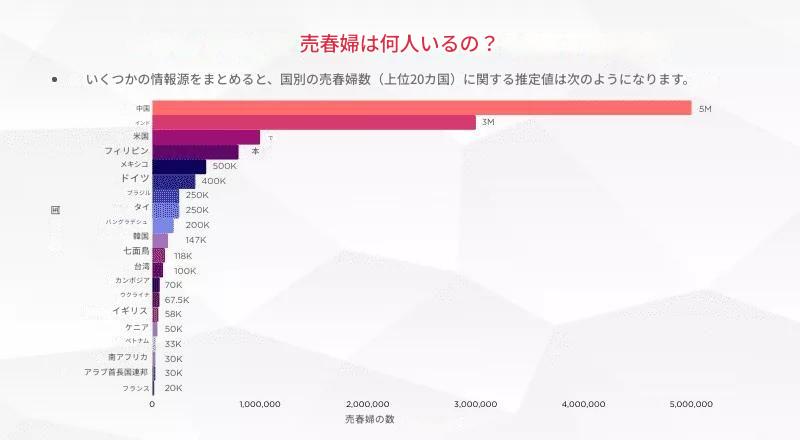 どっかのスレで前から日本人女は世界有数の性輸出国みたいなこと言ってた中国人がいたが日本全然ランク外じゃん