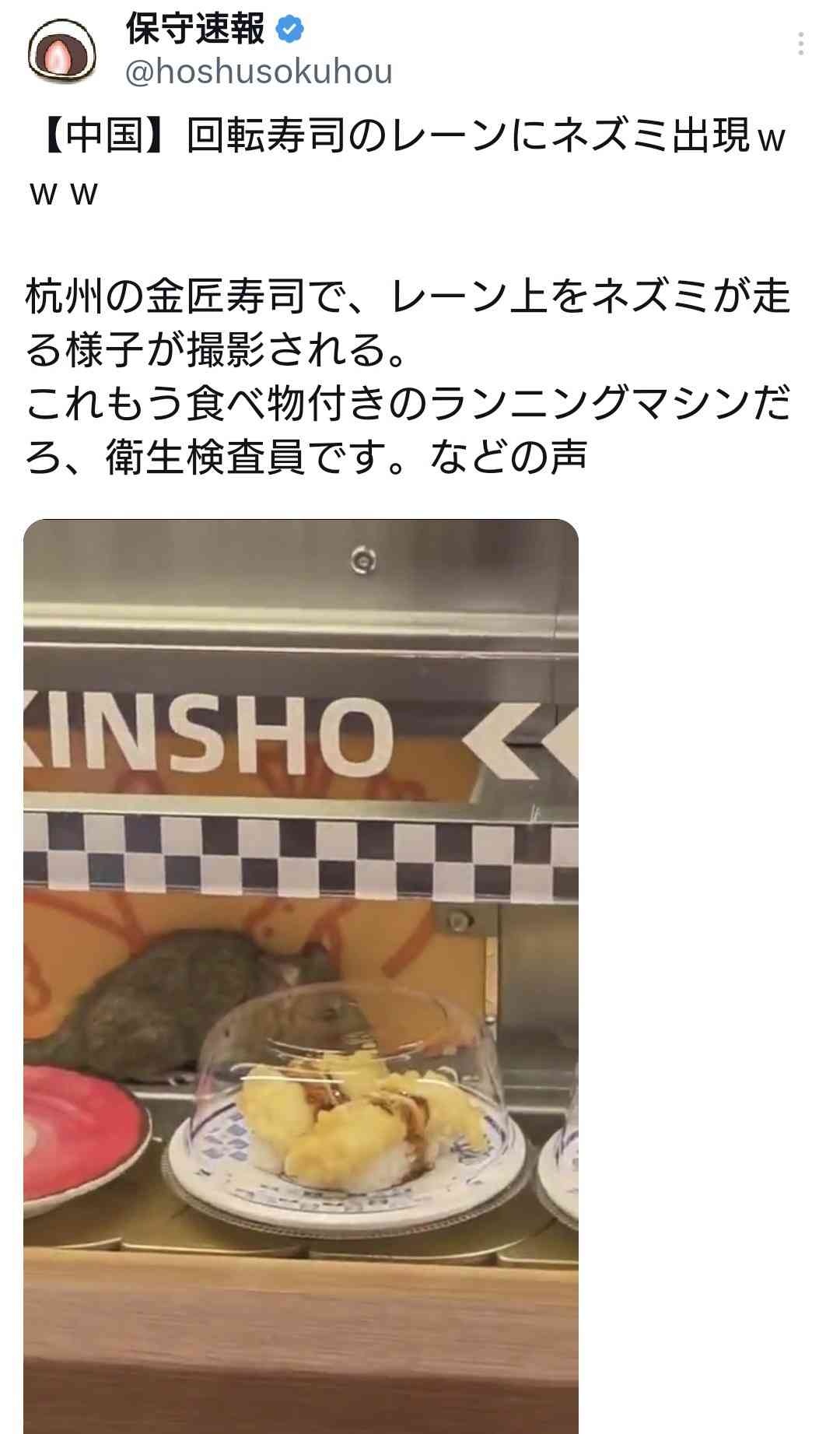 中国の回転寿司のレーンにネズミが出現🐭
