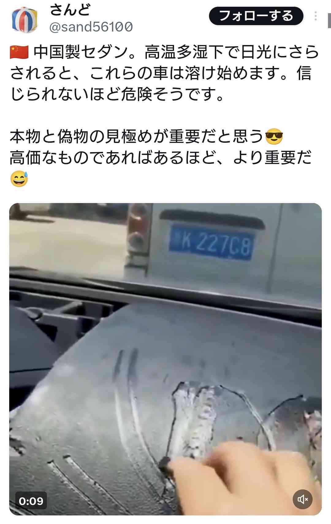 ここまで酷くはないがうちのマツダも10年経ったらダッシュボードがベタベタに溶け始めたわ