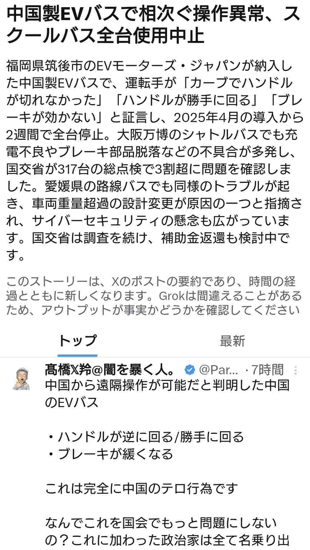 怖いからバスの車体に「中国製」と大きく表記しておいて欲しい