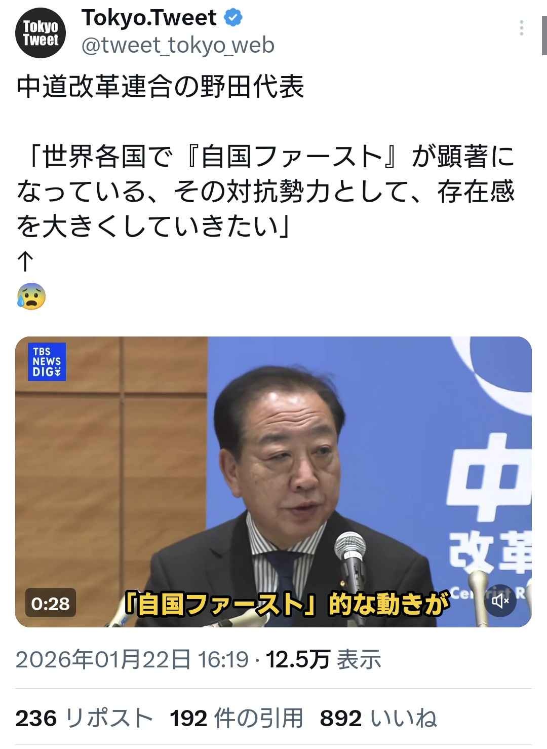 野田「自国ファーストより自分ファースト!」