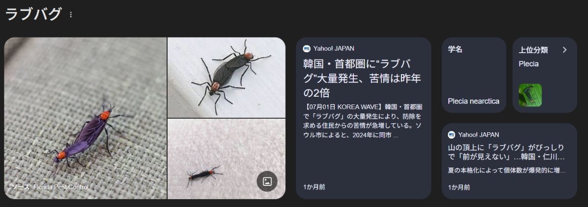 大量発生の原因とされるのは、やはり気温上昇。亜熱帯気候に生息するラブバグにとって、韓国が繁殖に適した環境に変化したようだ。