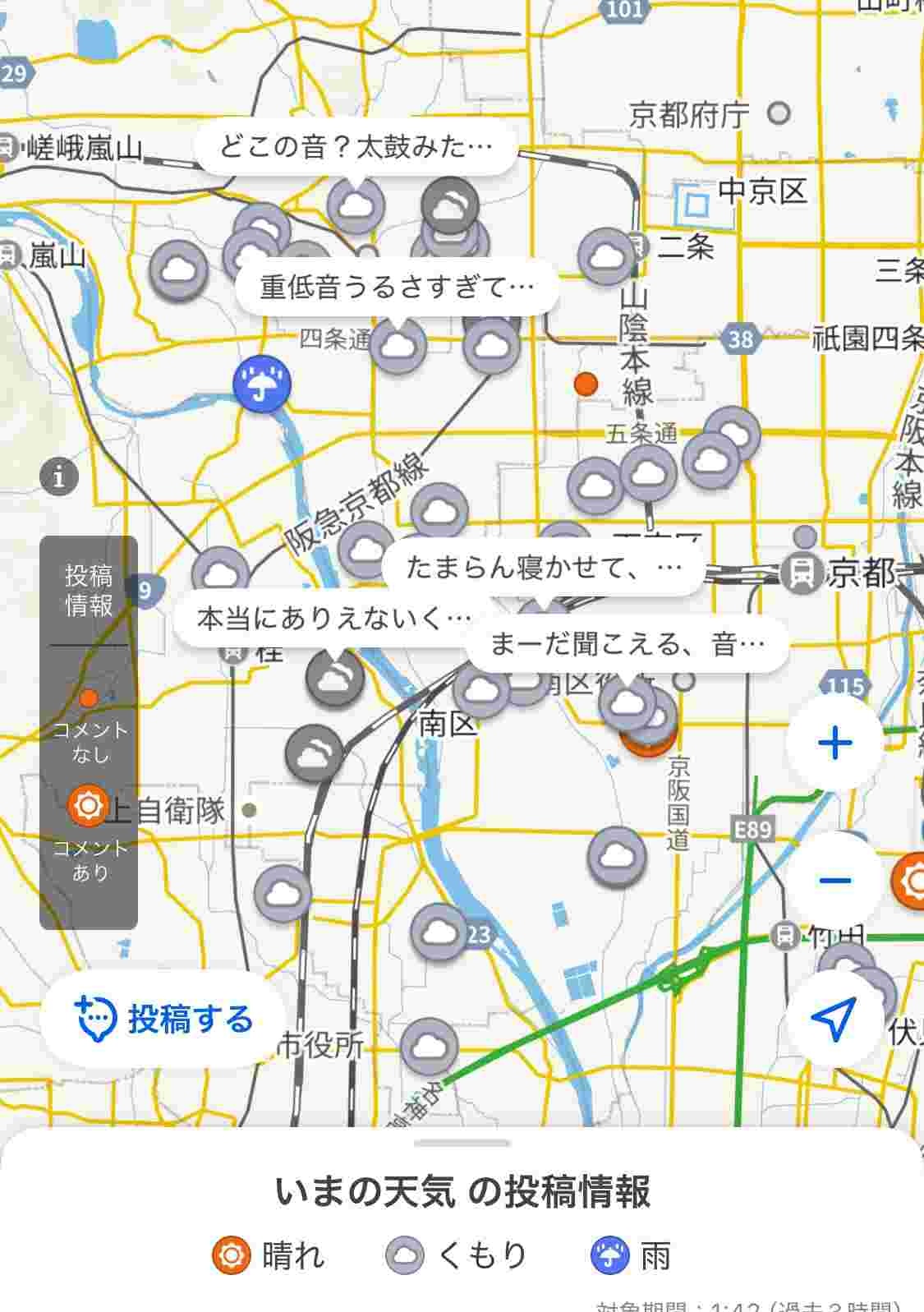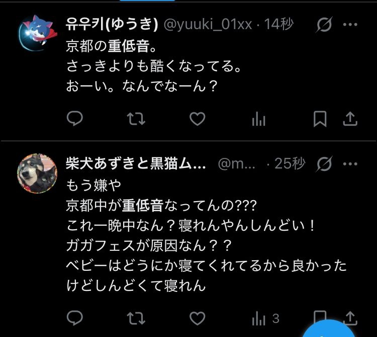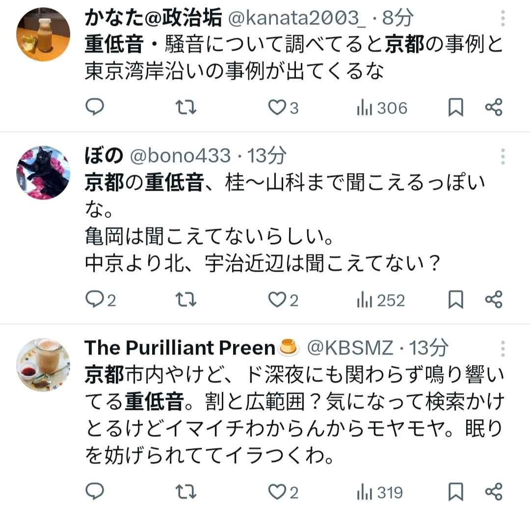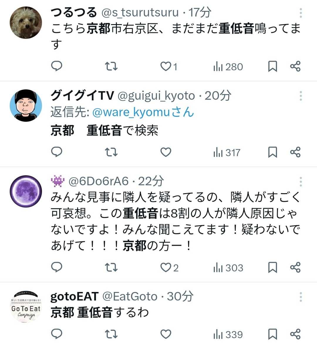 クソったーで京都 重低音で検索すると呟いてる人多いよ