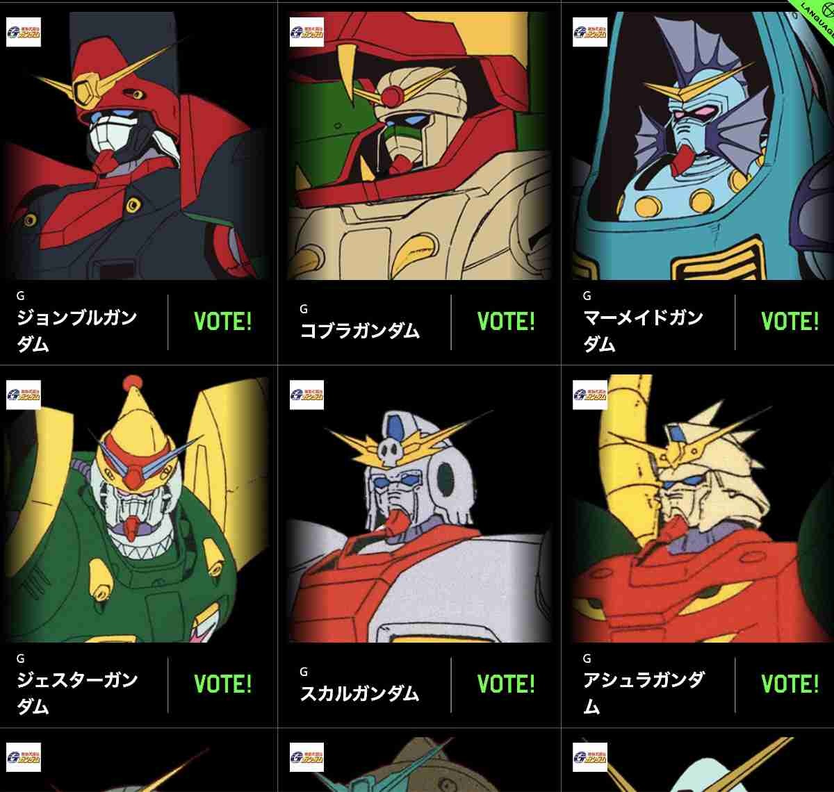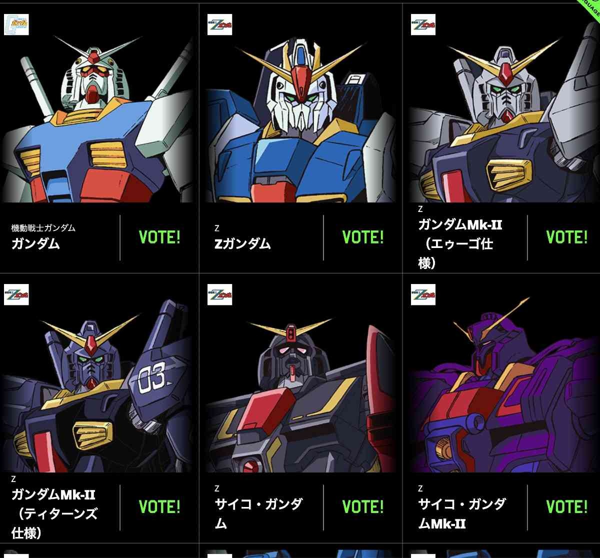 投票の対象となるのは同ウェブサイトに収録済みの「宇宙世紀シリーズ」および「オルタナティブシリーズ」に分類されるアニメーション作品(一部を除く)のなかから、独自の基準で選ばれた「ガンダム」です。