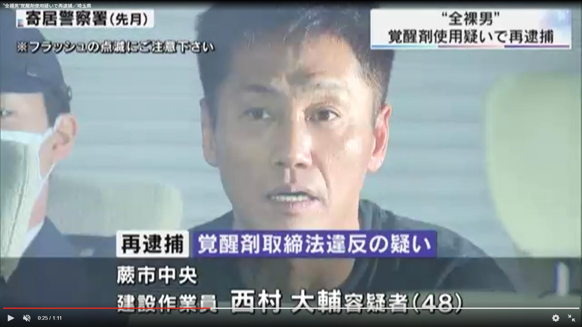 “全裸男”覚醒剤使用疑いで再逮捕/埼玉県