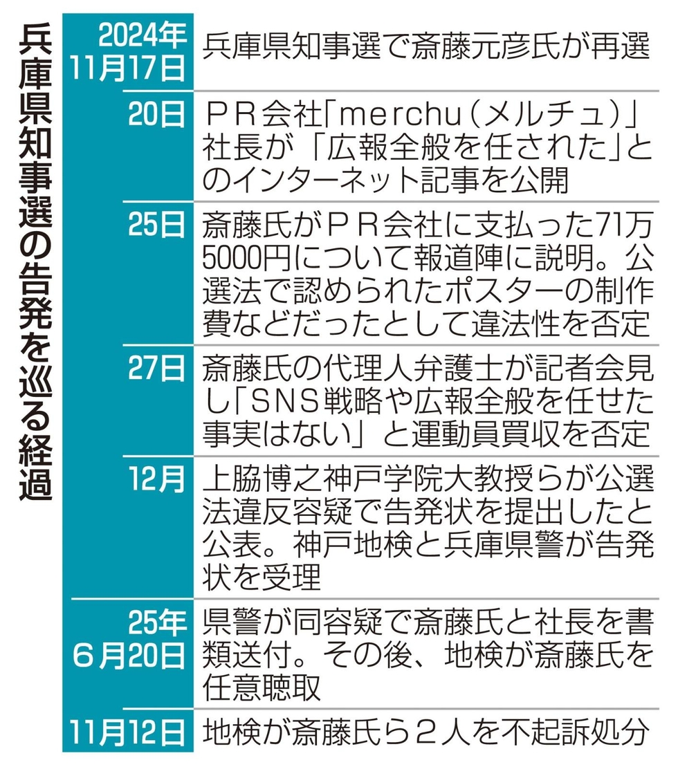 兵庫県知事選と告発文書問題に絡む事件7件について12日、神戸地検は一斉に斎藤元彦知事らを不起訴処分とした。一連の問題では、これまで静観を貫いてきた斎藤知事。この日も短いコメントを出したものの詳細な経緯は依然として不明なままで、説明責任を問う声も残る。知事選から1年たっても収束は見通せそうにない。