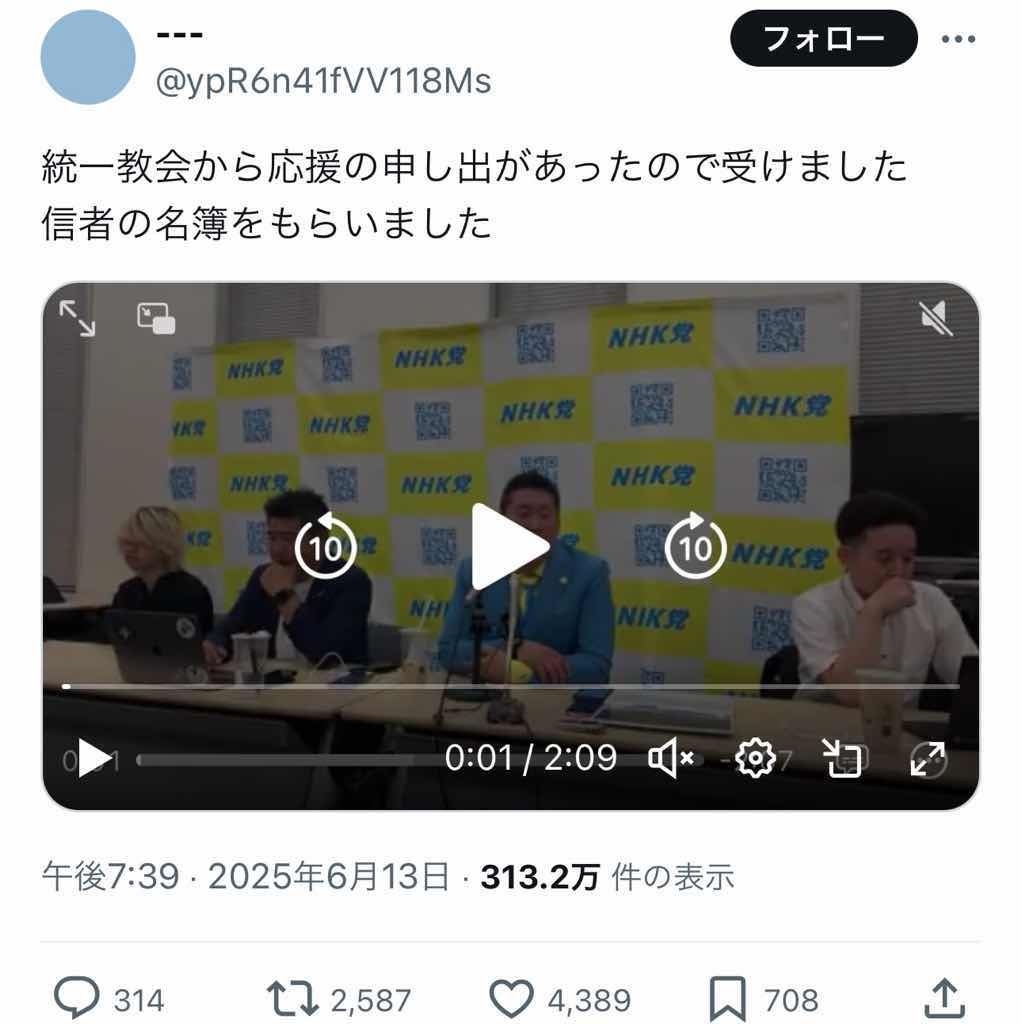 統一教会から応援の申し出があったので受けました