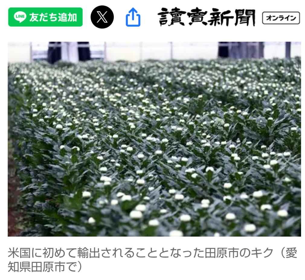 キクは仏壇や墓に供える仏花のイメージが強く、JA愛知みなみは日常的な使用、普及を進めてきた。24年には農水省の大規模輸出産地生産基盤強化プロジェクトに採択されて予算も付き、東海農政局も輸出支援に本腰を入れる。