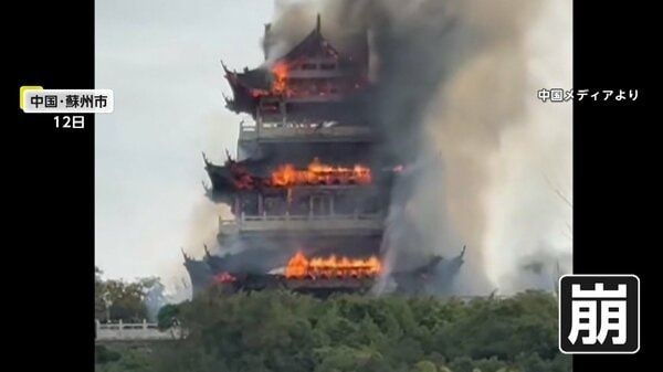 中国・蘇州市でカメラが捉えたのは、炎と黒煙に包まれた歴史的建造物です。
