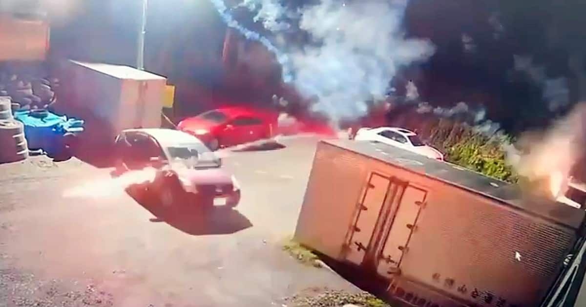 パキスタン人が経営するヤードにロケット花火が撃ち込まれる様子が防犯カメラに映っていた=令和7年10月17日、北海道江別市