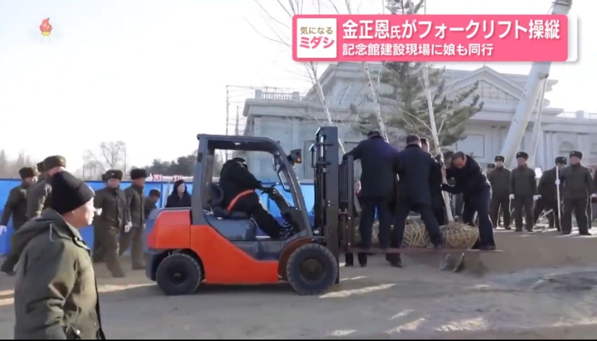 金正恩氏がフォークリフト操縦 記念館建設現場に娘も同行