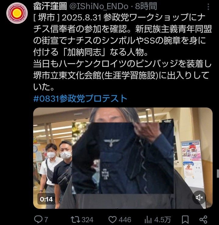 参政党を下げる為に過激極右を装った左翼工作員ですわ😊