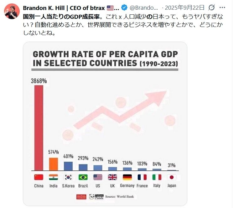 成長したならもっと頑張らないと日本に何世紀も遅れを取ったままだよ