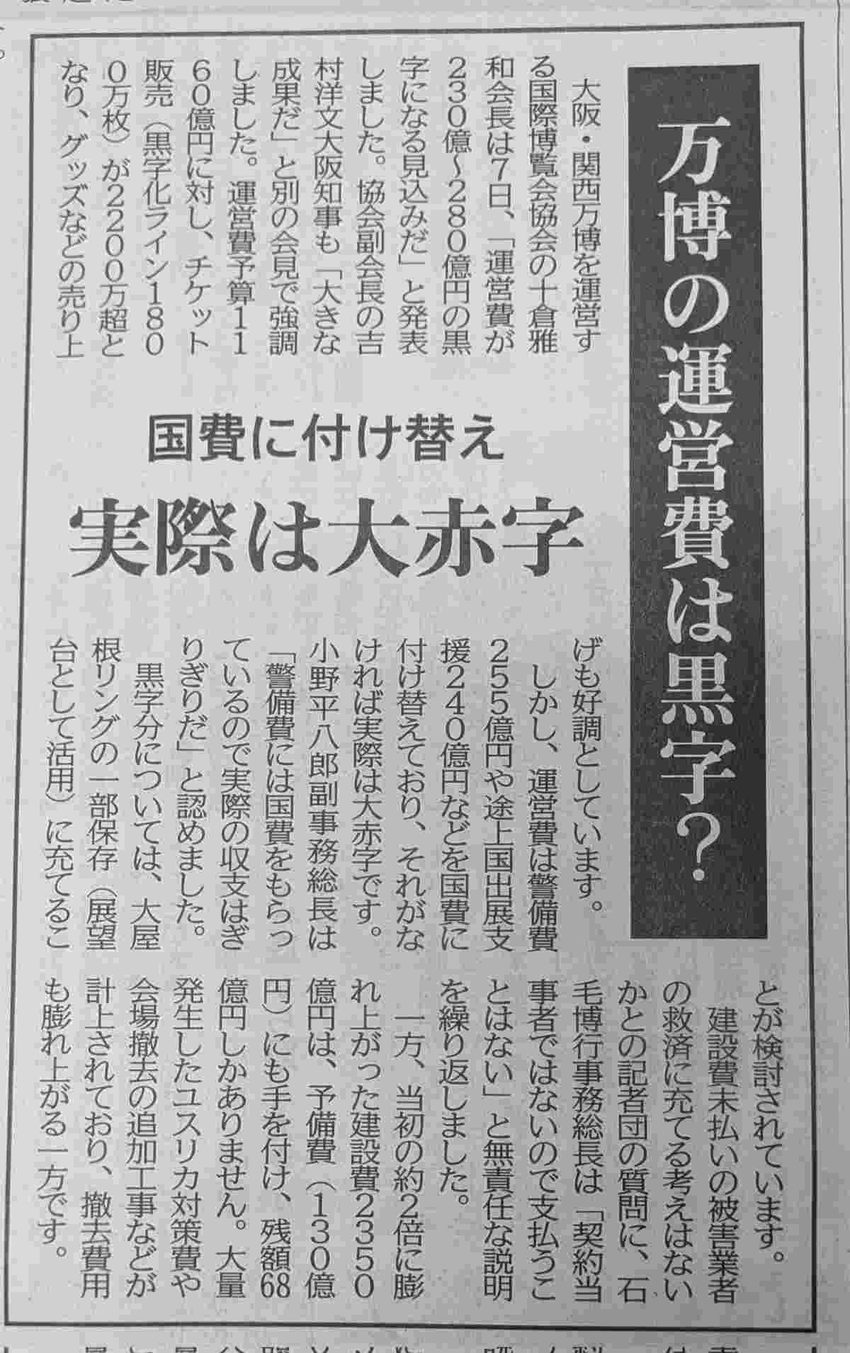 大阪万博、巨額の税金を補助金で注入してムリヤリ黒字にしているだけであり、実際は大赤字とバレる