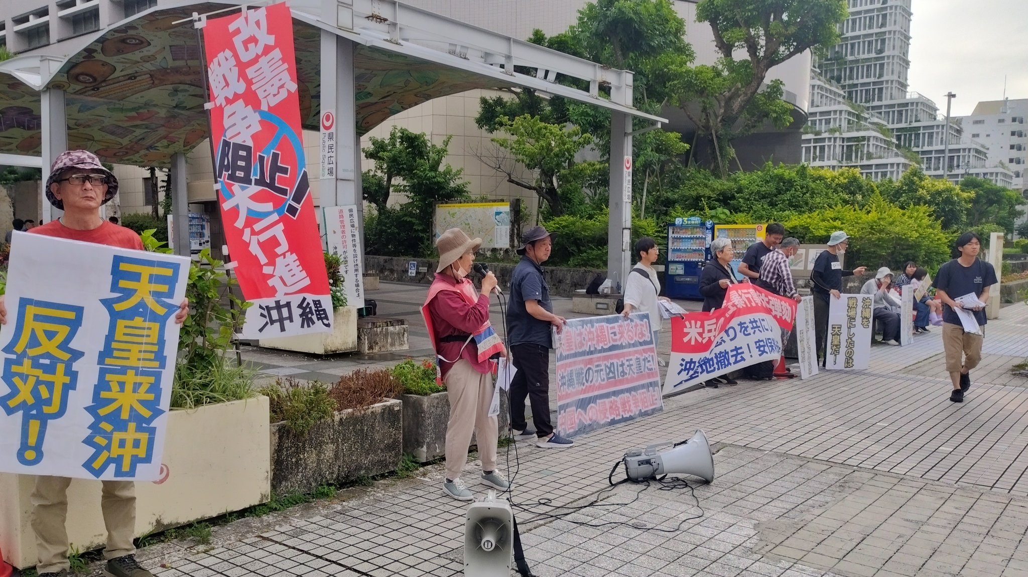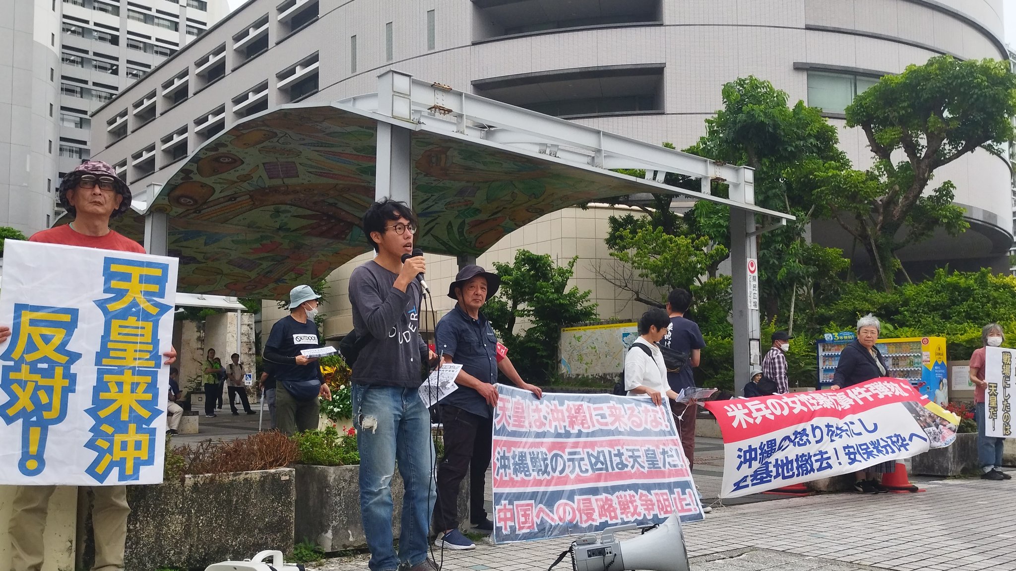 天皇ご一家訪問の沖縄にて「天皇制反対」「天皇は帰れ」と抗議活動の男を逮捕 その時の様子がこちら